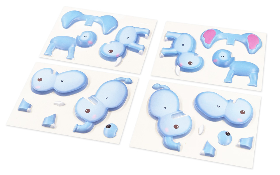・半立体のステッカーを貼り合わせてオリジナル3Dフィギュアを作ることができます。